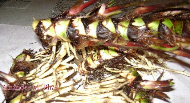 With innocent reverence, we would carefully pluck a small twig, holding it as if it were something divine. That little branch was not just a twig, it was our offering to the season of renewal, a sacred token for the “Navreh Thaal”. From there, our journey would take us further to the marshy fields of village Kangan, where we would wade through slush and mud to collect “Vaay Gandiur” (sweet flag). Our legs would sink deep into the cold earth, our clothes smeared with mud but none of it mattered. The joy was too pure, too innocent. That mud carried no discomfort; it carried belonging.